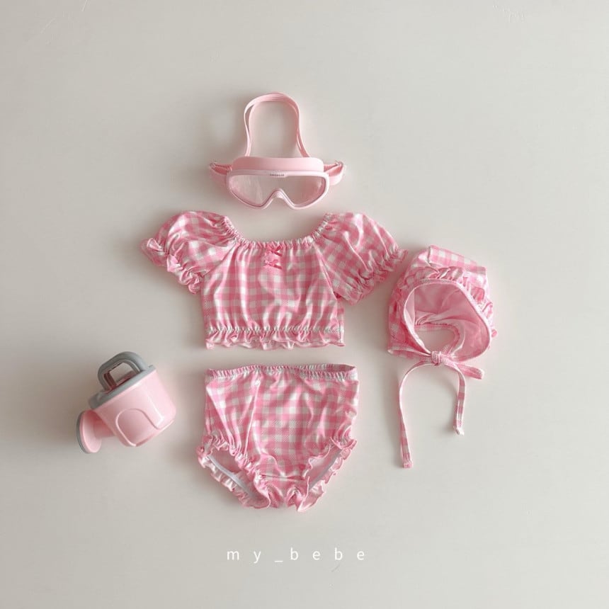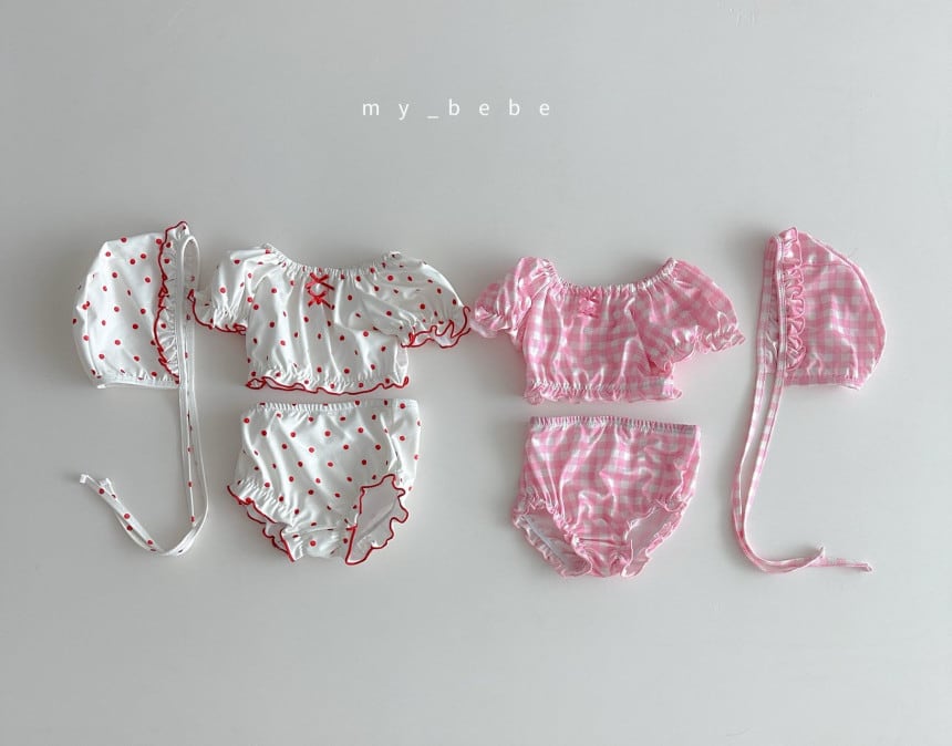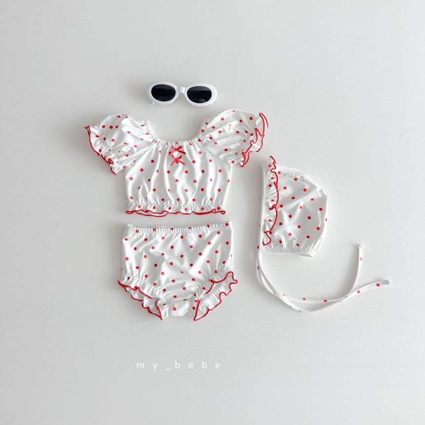 【KIDS】フリルビキニスイムキャップ水着セット【yo-26sm03139】