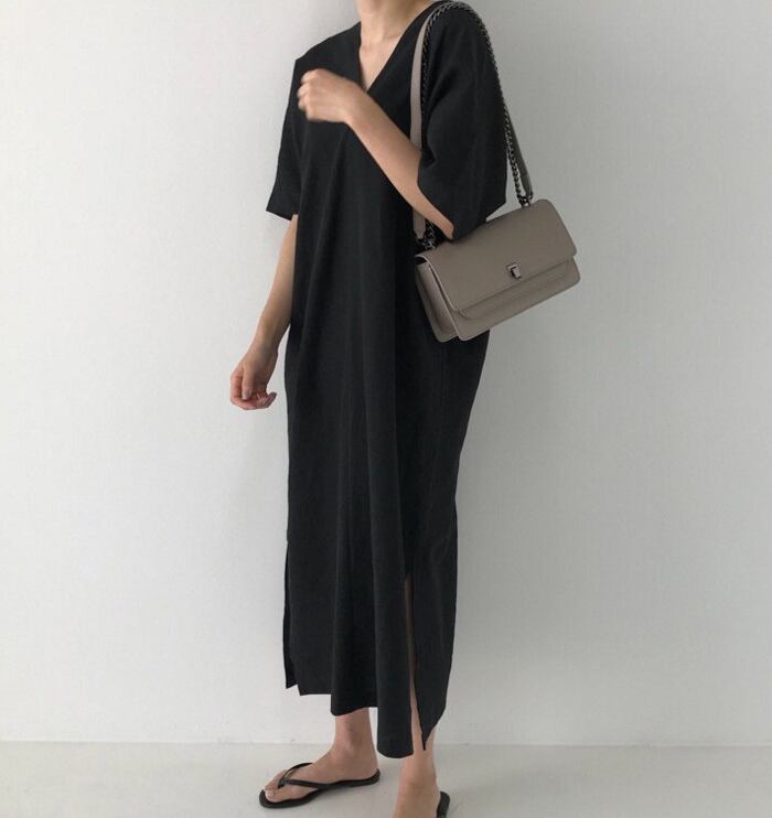 【MOM】Vネックロングワンピース【BS-00-011-MOM】【200501537-mom】
