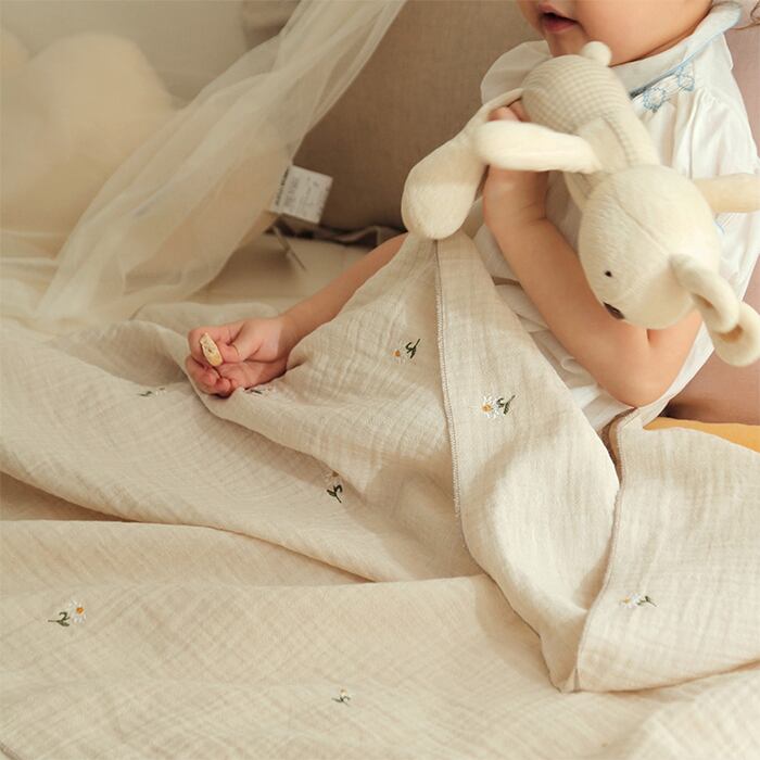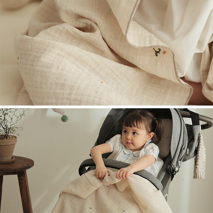 【KIDS/BABY】花柄刺繍二重ガーゼ掛け布団ブランケット【210401_decofuton06】