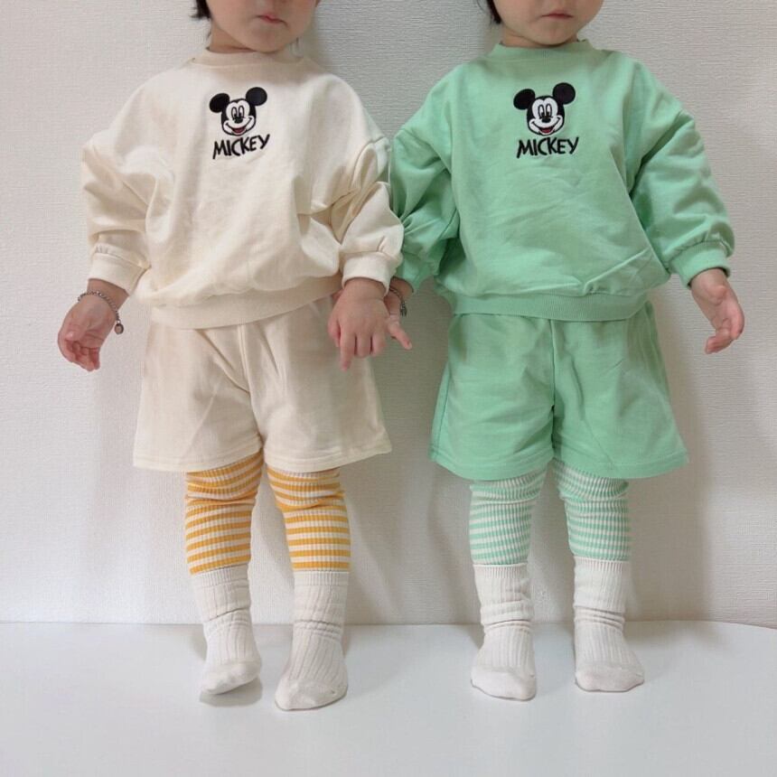 【KIDS】並行輸入品ミッキー刺繍レギンス付き上下セット【yo-24fl08635】